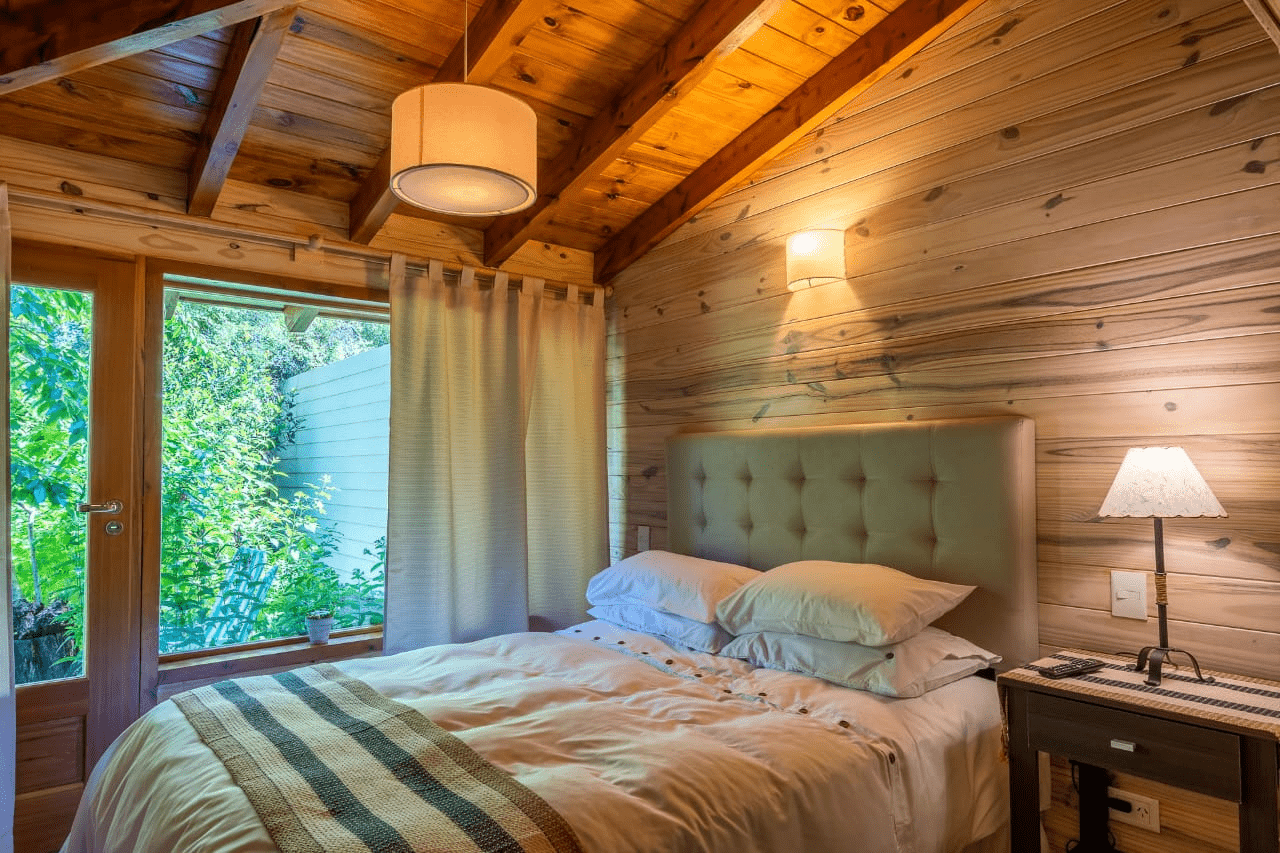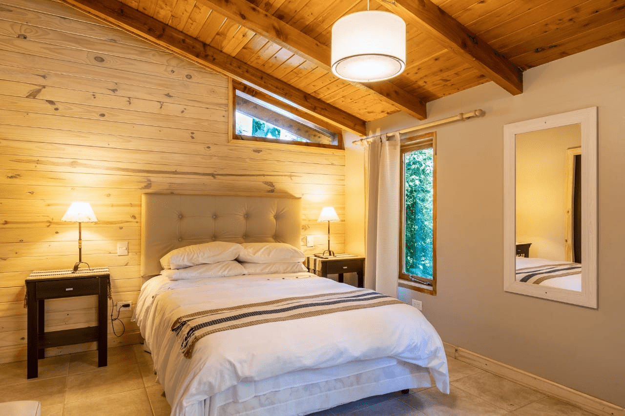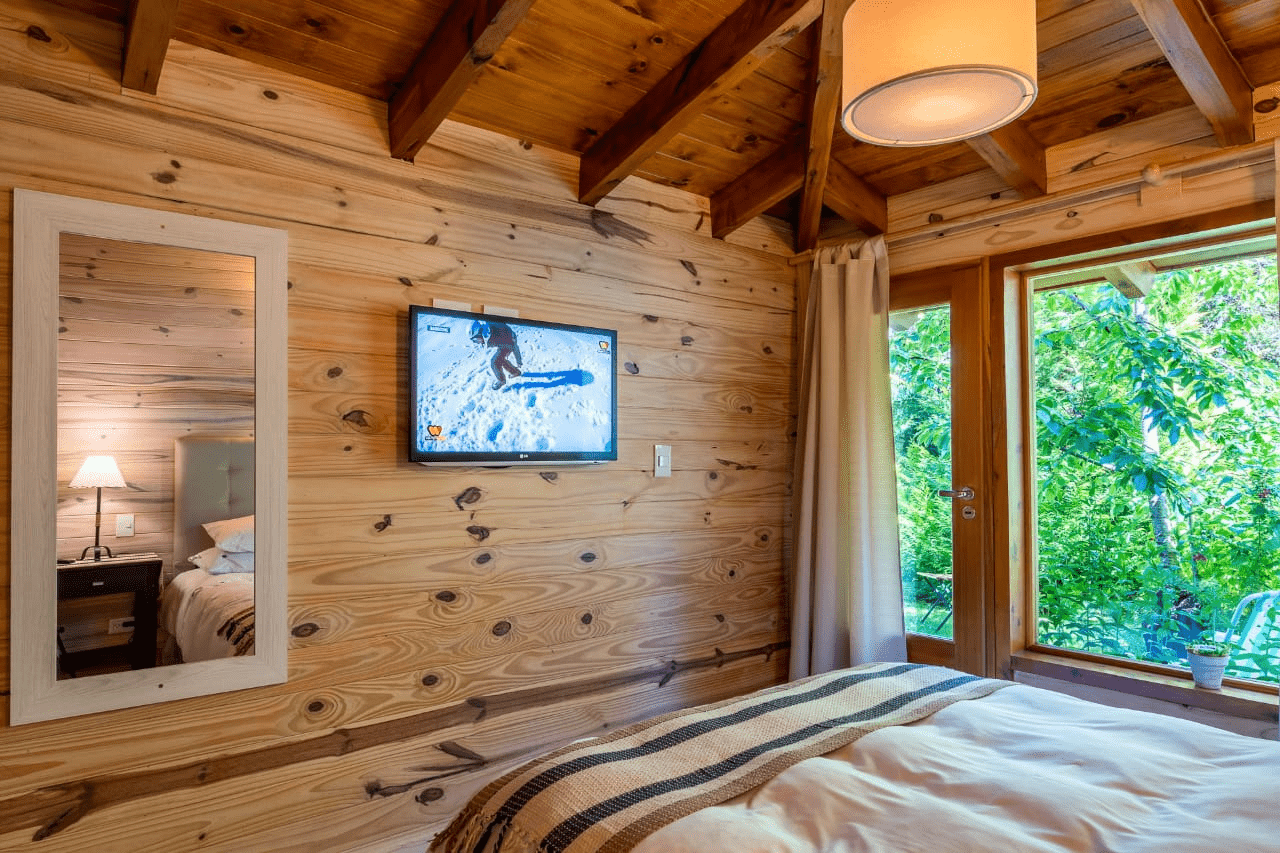 Cada cabaña cuenta con Cocina completa vajilla Heladera, microondas, licuadora, tostadora, anafe eléctrico, Baño, sillón cama con un carricama , cama matrimonial, TV LED, cable , internet, calefacción por piso radiante, y cada cabaña tiene acceso al quincho cerrado y calefaccionado que hace un ambiente más para las dos cabañas.