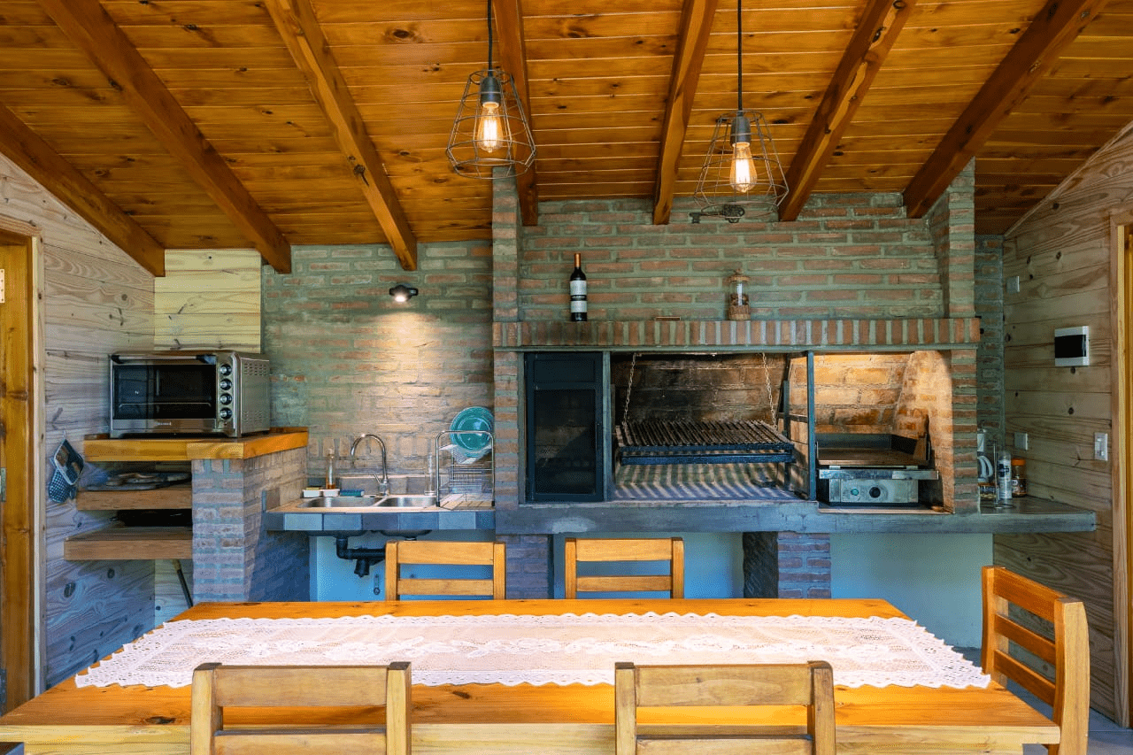 Equipad para 6 personas. La misma está compuesta por dos Cabañas, unidas por un quincho con parrilla cerrado.