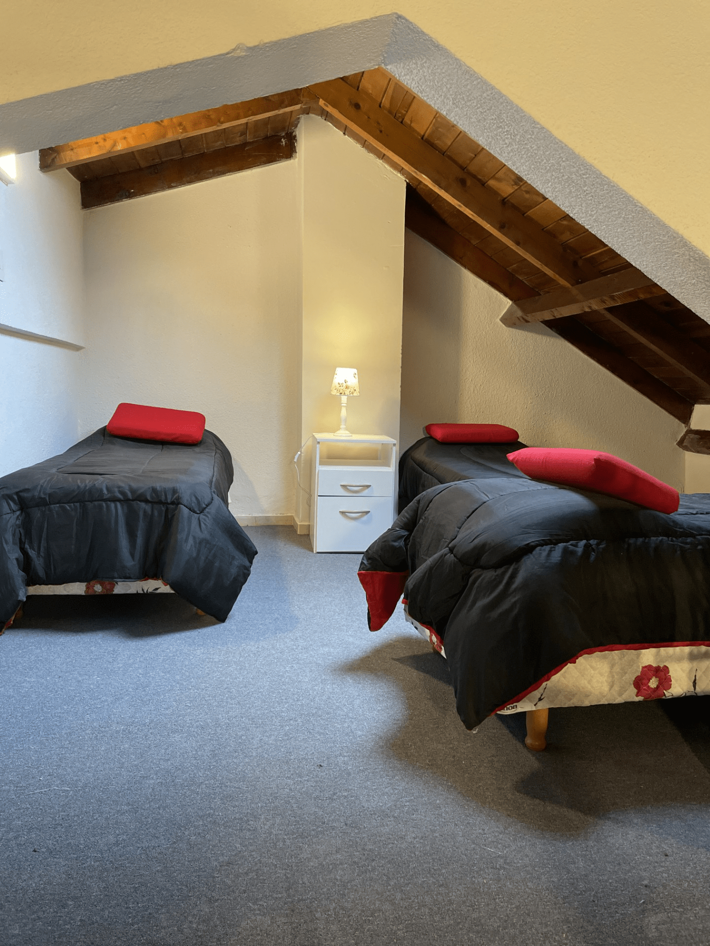 Un dormitorio de 3 camas individuales.