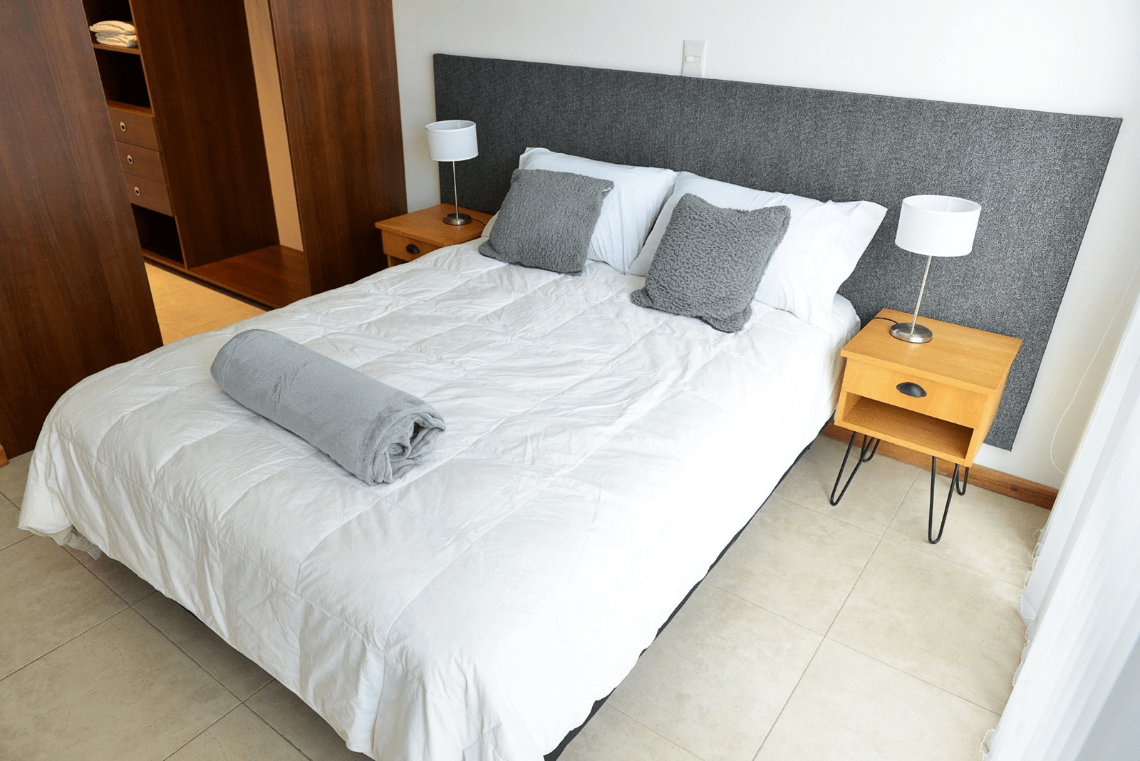 Cuenta con un dormitorio de cama matrimonial con vestidor.